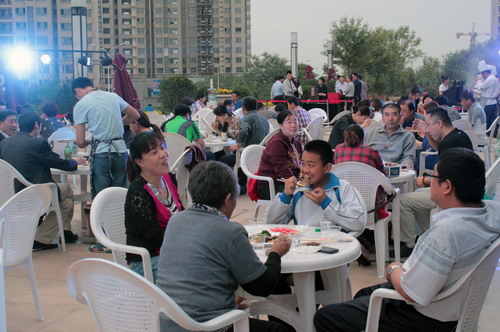 5月13日晚,銀豐·唐郡營銷中心為新老業(yè)主精心準備了口感細膩滑嫩的黑椒牛排、肥而不膩的烤魚、外焦里嫩的烤蝦以及培根卷、菌類、紫薯等不同風味的燒烤美食。地產集團唐冶公司營銷部還精心準備了啤酒、飲料和多種水果、各式西點,美味不一而足。大家碰杯、喝酒、暢聊、吃燒烤,盡情享受著這樣一個美好愜意的夜晚。此外,銀豐唐郡項目還精心設置了抽獎環(huán)節(jié),業(yè)主在享受美味的同時,又贏得了精美的獎品,高興而來,滿意而歸,幸福的滋味在每位業(yè)主心頭蕩漾。銀豐·唐郡各式各樣的特色活動不僅贏得了業(yè)主及業(yè)內人士的一致贊譽,更為素未謀面的新老業(yè)主提供了建立友好鄰里關系的機會,實乃味濃情更深!