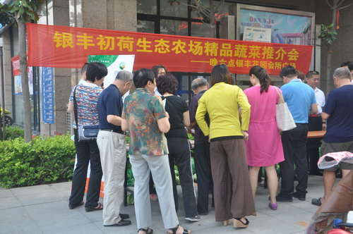 為答謝新老業(yè)主,2014年6月5日晚6時(shí),銀豐山莊、銀豐花園物業(yè)服務(wù)中心舉辦了一場(chǎng)“銀豐初荷生態(tài)農(nóng)場(chǎng)精品蔬菜推介會(huì)”--有機(jī)甘藍(lán)菜特賣活動(dòng)(銀豐初荷生態(tài)農(nóng)場(chǎng)為此次活動(dòng)提供有機(jī)甘藍(lán)菜約800棵)。