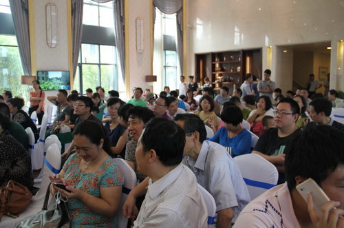 現場客戶多為中年人,而一些是原本居住過銀豐花園、銀豐山莊等銀豐地產的老業主們,趁此新組團推出之際,挑選個大戶型,改善住房環境。現場還有交三萬抵四萬,贈三年物業費的特別優惠。另外,還給予開盤當日選房的客戶送出精美的父親節禮品茶具一套。