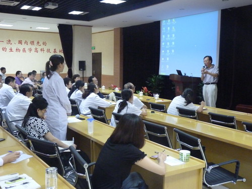 年7月16日下午,受銀豐生物邀請,美國干細胞實驗室負責人曲廷玉教授來山東省臍血庫進行神經干細胞方面的專題講座。銀豐生物董事長彭秀玲,總經理生德偉,副總經理董白翔、首席科學家沈柏均教授以及相關業務、技術、實驗人員參加了本次講座培訓。