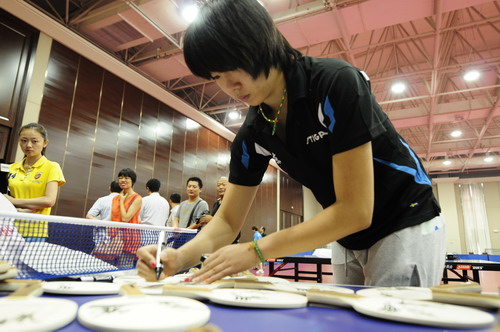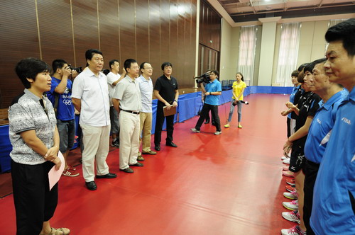 王偉、王彤一行先后與運動員張繼科、李曉霞、陳夢、方博等親切交談,詳細詢問訓練情況、身體狀況,勉勵他們以頑強的斗志、精湛的技藝取得好成績。