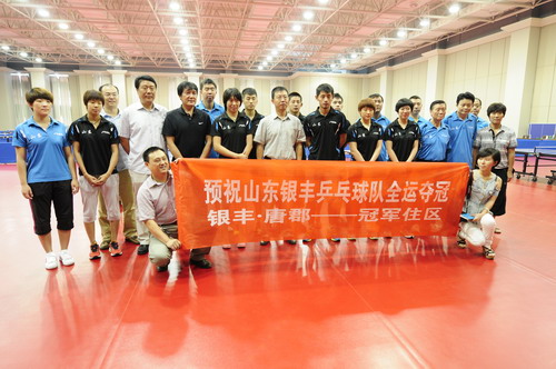 2013年8月22日,在舉國關注的第十二屆全運會即將打響之際,山東銀豐投資集團有限公司董事長王偉,銀豐房地產開發有限公司總經理王彤代表銀豐集團全體同仁親切看望和慰問了正在緊張訓練的山東銀豐全運乒乓球隊運動員、教練員,為大家加油鼓勁。