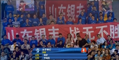 為支持山東全運乒乓球隊取得佳績,銀豐集團特地組織助威團遠赴鞍山、親臨比賽現場為山東銀豐乒乓球隊加油鼓勁。比賽現場,啦啦隊高舉橫幅歡呼吶喊,氣氛熱烈,把賽場氛圍推向了高潮。在高昂的加油助威聲中,比賽異常激烈,決勝局在激戰到3平后,李曉霞連得3分拉開比分。李曉霞此后越戰越勇,掌控大局以11-6鎖定勝利,就此以4-3險勝陳夢,奪得了個人首枚全運會女單金牌,創造了全滿貫的壯舉。
