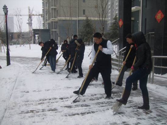 2011年2月27日,一場(chǎng)春雪再次飄落,在進(jìn)一步凈化空氣、緩解旱情的同時(shí),也給業(yè)主出行帶來了不便。為了保證道路通行順暢、小區(qū)業(yè)主能夠安全的出行,銀豐物業(yè)的全體員工,從凌晨6點(diǎn)開始,冒著嚴(yán)寒清掃路面積雪,極大地方便了小區(qū)居民早晨出行和車輛通行。
