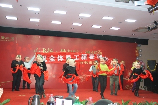 熱歌勁舞,春意融融。整臺聯(lián)歡會氣勢磅礴、高潮迭起,編排新穎,格調(diào)清新,融聲樂、舞蹈、曲藝等多種藝術形式于一體,既民族特色濃郁,又時代氣息鮮明,聯(lián)歡會不論是從構思還是到表演,都充滿了銀豐房地產(chǎn)獨特的企業(yè)文化特色,為廣大員工奉獻上一道精美的藝術大餐。聯(lián)歡會中間穿插進行的員工抽獎活動,增進了員工互動與融合,營造了歡樂祥和的節(jié)日氣氛。聯(lián)歡會結束后,集團公司領導與全體員工共進晚餐,同賀新春。