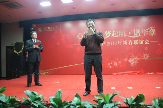 彩鳳來儀迎大治,金龍起舞慶新春。1月13日晚,銀豐大廈11樓多功能廳內(nèi)處處洋溢著喜悅與歡快的氣氛,銀豐房地產(chǎn)2012年迎春聯(lián)歡會在這里舉行。銀豐集團董事長王偉、副總裁彭秀玲、劉旭,以及集團公司、房地產(chǎn)公司、各子公司全體員工、物業(yè)公司員工代表歡聚一堂,共同觀看了演出。