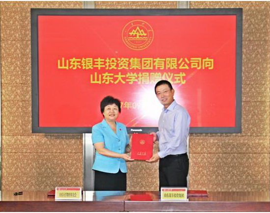 2017年9月9日,山東銀豐集團(tuán)向山東大學(xué)捐贈簽約儀式在山東大學(xué)中心校區(qū)舉行。山東銀豐集團(tuán)向山東大學(xué)捐贈壹仟萬元人民幣,支持山東大學(xué)發(fā)展。