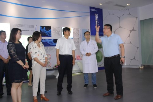 7月27日上午,中國科學技術交流中心副主任趙新力,省科技廳副廳長于書良、科技合作處處長梁愷龍等領導一行蒞臨齊魯干細胞公司參觀調研。公司總裁劉國軍、副總裁董白翔、技術負責人曲廷瑜教授,銀豐基因科技公司總經理陳守林,銀豐低溫醫學科技公司總經理賈春生,銀豐生物美國公司總經理安紅彥等陪同參觀。