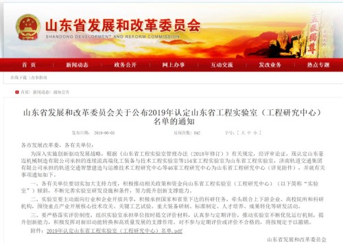 據(jù)悉,山東省工程實驗室(工程研究中心)是依托企業(yè)、科研機構和高等院校,圍繞提高產業(yè)轉型升級而設立的研究開發(fā)平臺,是基礎研究成果向工程技術轉化的重要途徑,是我省自主創(chuàng)新體系的重要組成部分。