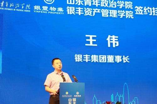 銀豐集團(tuán)董事長(zhǎng)王偉在致辭中介紹了銀豐集團(tuán)的四大業(yè)務(wù)板塊及銀豐物業(yè)的服務(wù)模式和戰(zhàn)略目標(biāo)。希望能以這次銀豐資產(chǎn)管理學(xué)院的成立為切入點(diǎn),進(jìn)一步與山東青年政治學(xué)院合作,積極探索產(chǎn)學(xué)研結(jié)合的新路子,積極探討人才培養(yǎng)的新方法。期待銀豐資產(chǎn)管理學(xué)院做實(shí)、做強(qiáng)、做大,實(shí)現(xiàn)學(xué)生、學(xué)校、企業(yè)三方共贏,為社會(huì)發(fā)展做出應(yīng)有的貢獻(xiàn)。