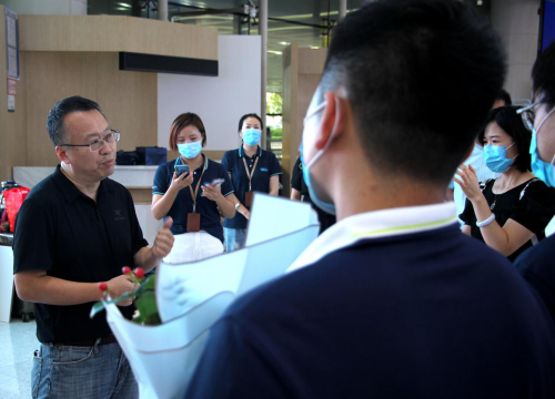 銀豐集團副總裁左紅斌:“出征送行的時候,我答應大家,回來時一定來迎接,我代表銀豐集團9000余員工,歡迎大家回家!”