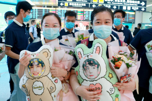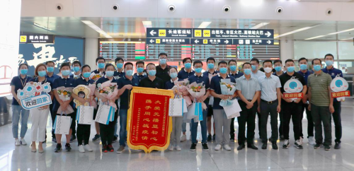 銀豐集團副總裁左紅斌,銀豐生物集團董事長生德偉等共同來到機場迎接隊員凱旋。