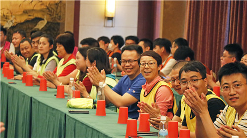 從最初的手忙腳亂到能夠手眼協調,從開始的嘈雜混亂到形成統一的節奏音調,每一個伙伴都通過自己的努力收獲了滿滿的成就感。最后,100多名伙伴一起共同演奏出了歌曲《紅日》,整齊劃一、充滿節奏感的聲音震撼了全場的每一個人,一致的目標,相同的節奏,行動的統一,令伙伴們心潮澎湃,喚醒了全身的細胞。