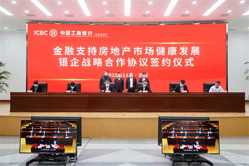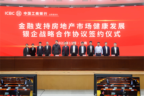 在活動現場,工商銀行山東省分行黨委委員、副行長張曉瑞,銀豐集團副總裁李斌代表雙方簽署協議。簽約儀式上,工商銀行山東省分行還進行了“線上+線下”集中簽約儀式,分別與山東綠城、濟南中海城、山東遠洋、濟南龍湖等企業簽署戰略合作協議。
